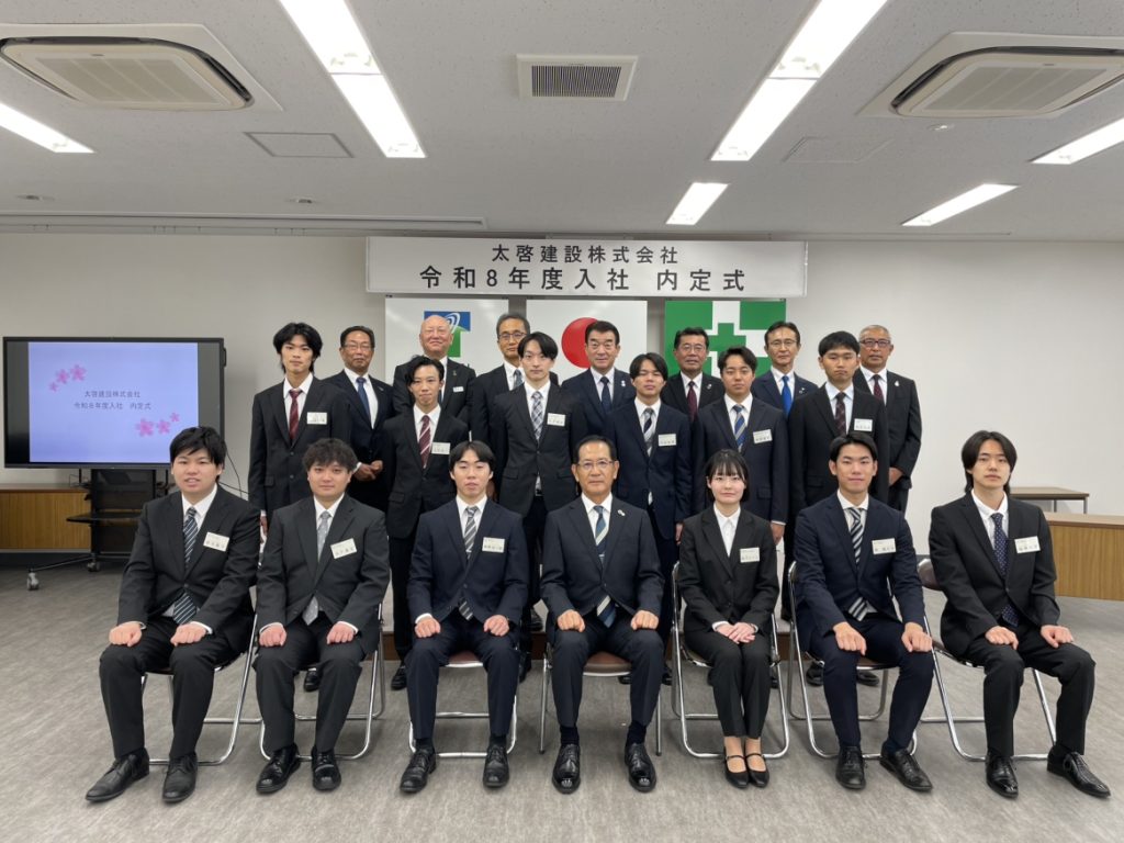 2025年10月1日、太啓建設株式会社では令和8年度入社予定者の内定式を執り行いました。