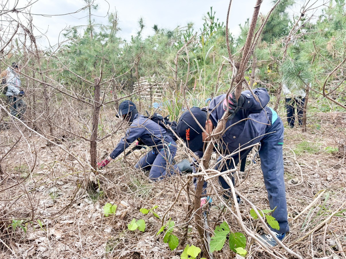 今回は、松の伐採および間伐作業を中心に実施。実際に作業に携わることで、防災林が街を守るうえでどれほど重要な役割を果たしているか、そしてその維持・管理がいかに大変であるかを改めて実感しました。
