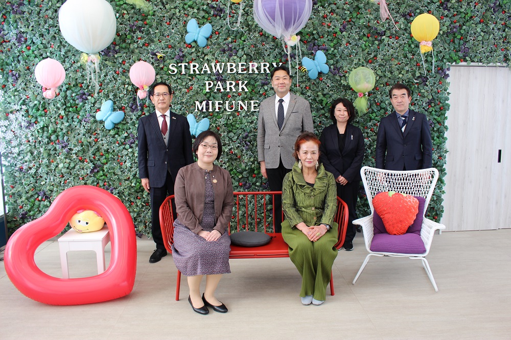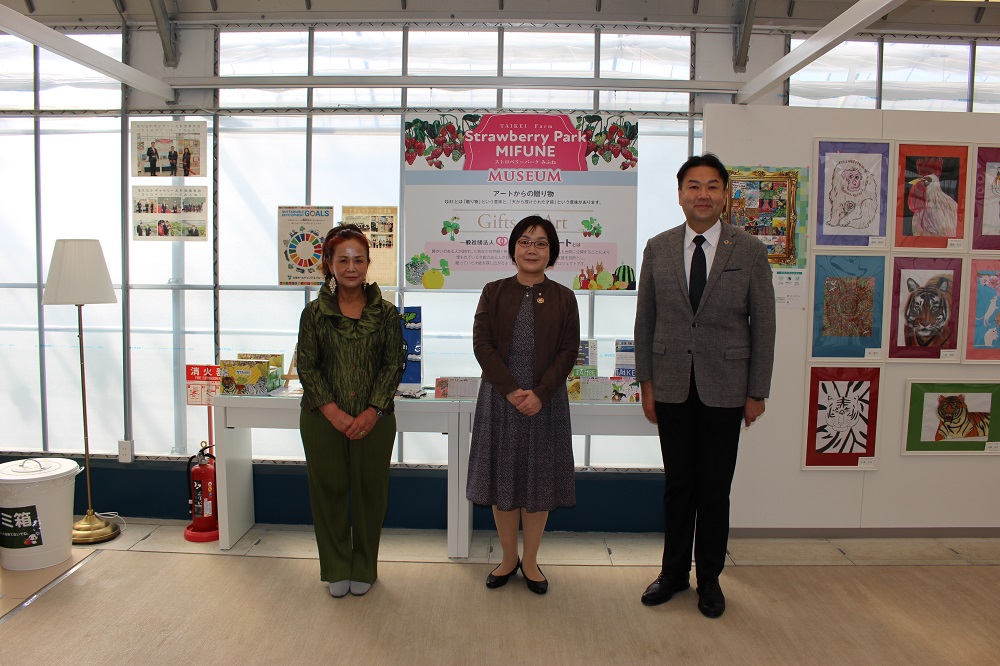 愛知県副知事が、障がい者のアート作品を展示する「まちなかギャラリー」の視察のため「ストロベリーパークみふね」を訪問されました。