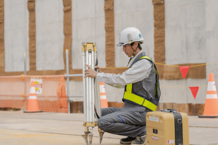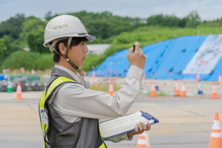 私は土木事業の現場で安全・品質管理業務をしています。構造物をつくるための測量・丁張掛けや、実際にできた構造物の寸法の確認。また、1日の工事の中で、前・途中・後に撮影をし、記録を残しながら現場の安全点検を行っています。直近では橋台(橋の土台部分)の施工に携わりました。